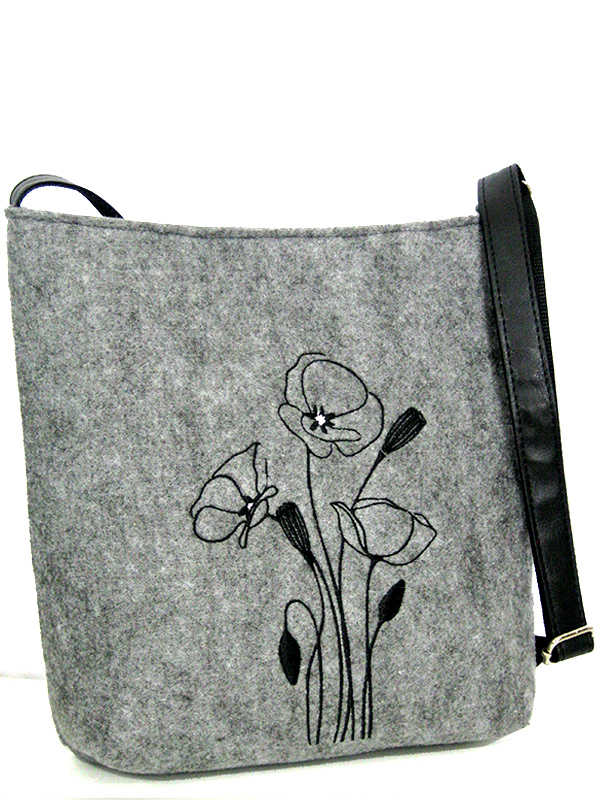 Designová kabelka střední velikosti s krásným motivem vlčích máků se dá díky nastavitelnému popruhu lehce nosit přes rameno. Uvnitř je kapsa s prostorem na telefon. Je vyrobena z vysoce kvalitního materiálu, krásně drží tvar.