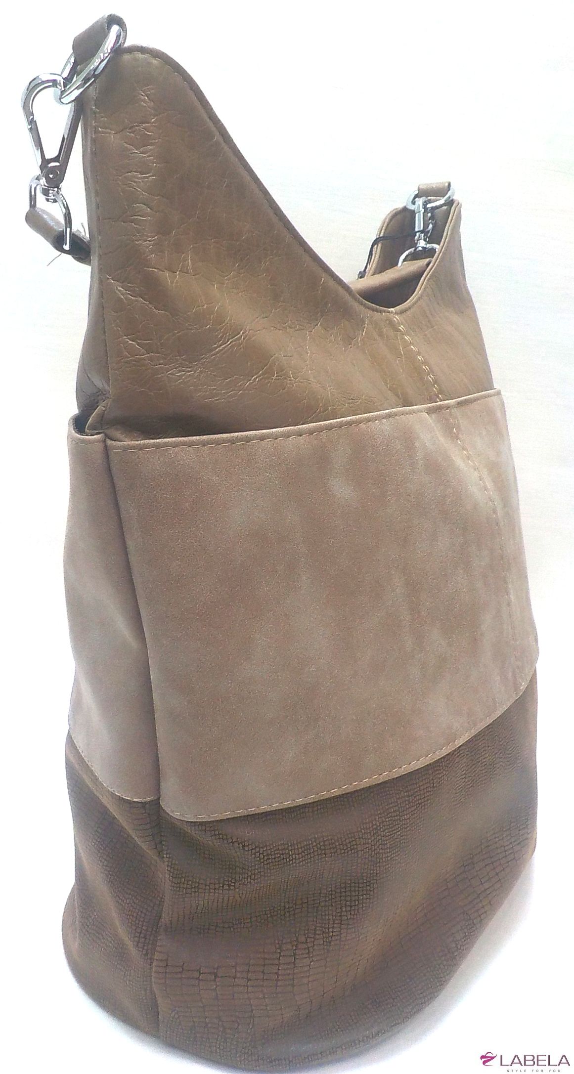 Moderní kabelka PRIMA je praktická a vhodná pro každodenní nošení. Její zajímavý design tvoří tříbarevné zpracování do pruhů. V prostřední části jsou schované na každé straně dvě kapsy. Uvnitř je jedna zipová kapsa, dvě na drobnosti a uprostřed látková přepážka uzavíratelná na zip. Může se nosit v ruce i na rameni, součástí je i nastavitelný popruh.